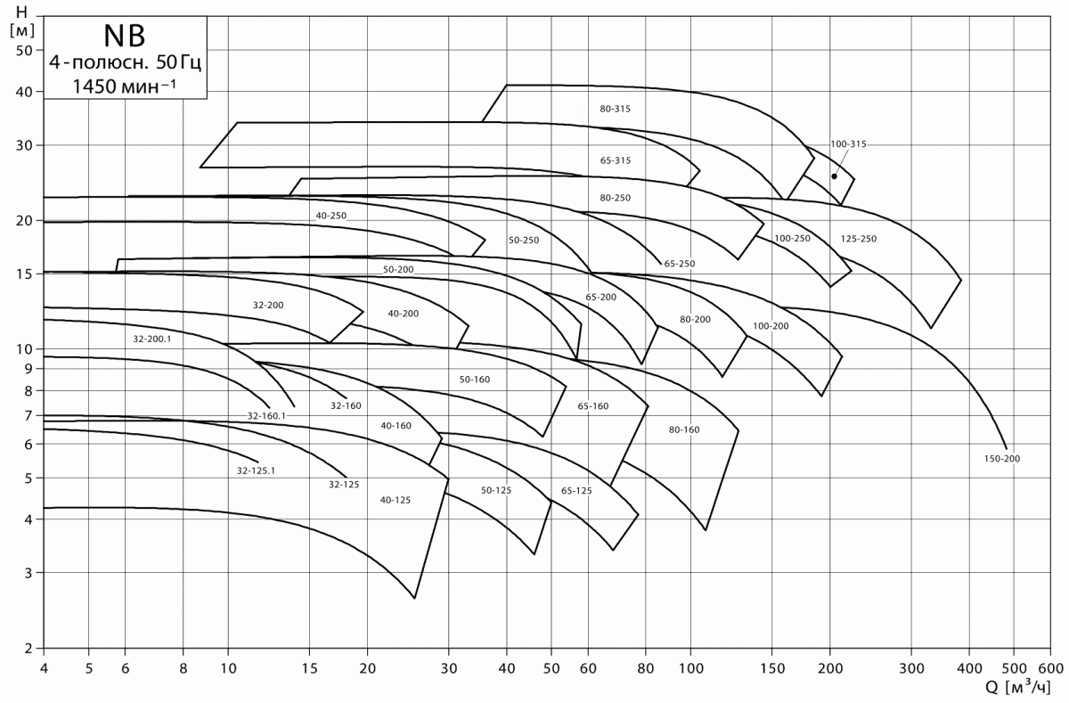 По запросу в определенных случаях могут поставляться насосы с уменьшенным диаметром рабочего колеса.