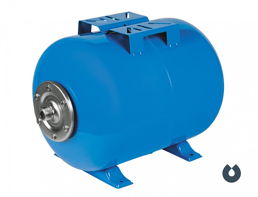 Горизонтальные гидроаккумуляторы объемом 24, 50 и 100 литров оснащены усиленной площадкой для установки насоса.