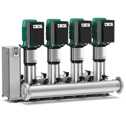 система известна надежностью в работе, поскольку укомплектована несколькими насосами для воды Wilo. Это центробежные высоконапорные установки. Нержавеющая сталь, из которой они изготовлены, только продлевает срок их эксплуатации, успешно защищая от порчи. Интегрирован преобразователь частот – 25-60 Гц;
