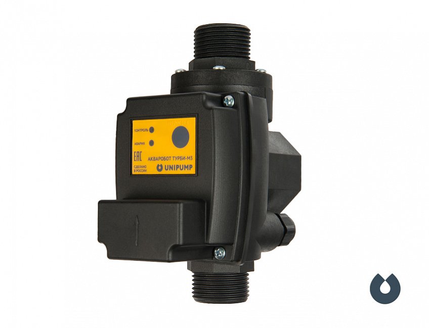 Блоки «АКВАРОБОТ ТУРБИ М1» и «АКВАРОБОТ ТУРБИ М3 однопороговый» управляют работой насоса по потоку и минимальному давлению Рмин.