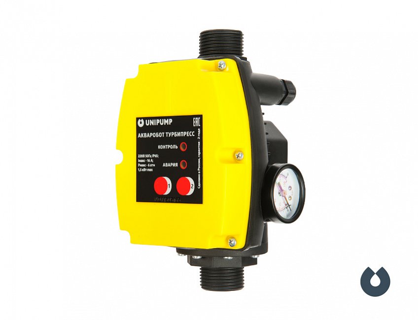 Блок АКВАРОБОТ ТУРБИПРЕСС — предназначен для автоматического управления однофазными поверхностными и погружными насосами мощностью до 1,5 кВт или до 2,2 кВт.