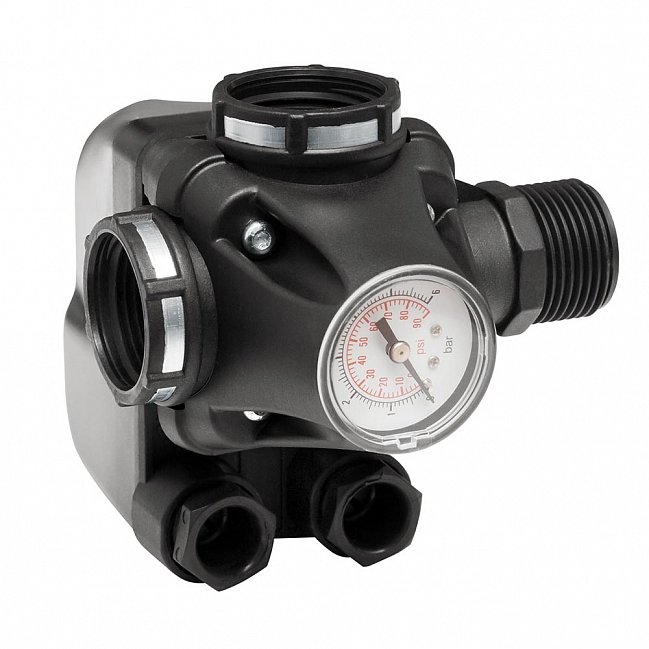 Реле давления со встроенным манометром PM/5-3W (производство концерна ITALTECNICA, Италия) — оригинальное устройство, соединяющее реле давления РМ/5, пятивыводной штуцер и манометр.