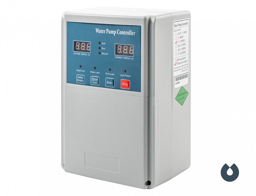 Пульт управления UNIPUMP CPT 1-7,5 предназначен для запуска и остановки двигателя трехфазного насоса, а также защиты двигателя от перегрузки по току, отсутствия фазы, низкого напряжения, от работы в режиме «сухого хода».
